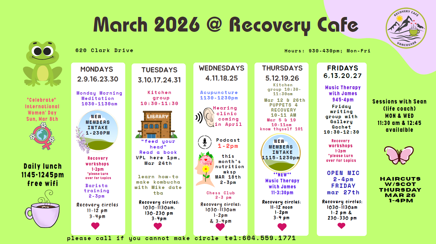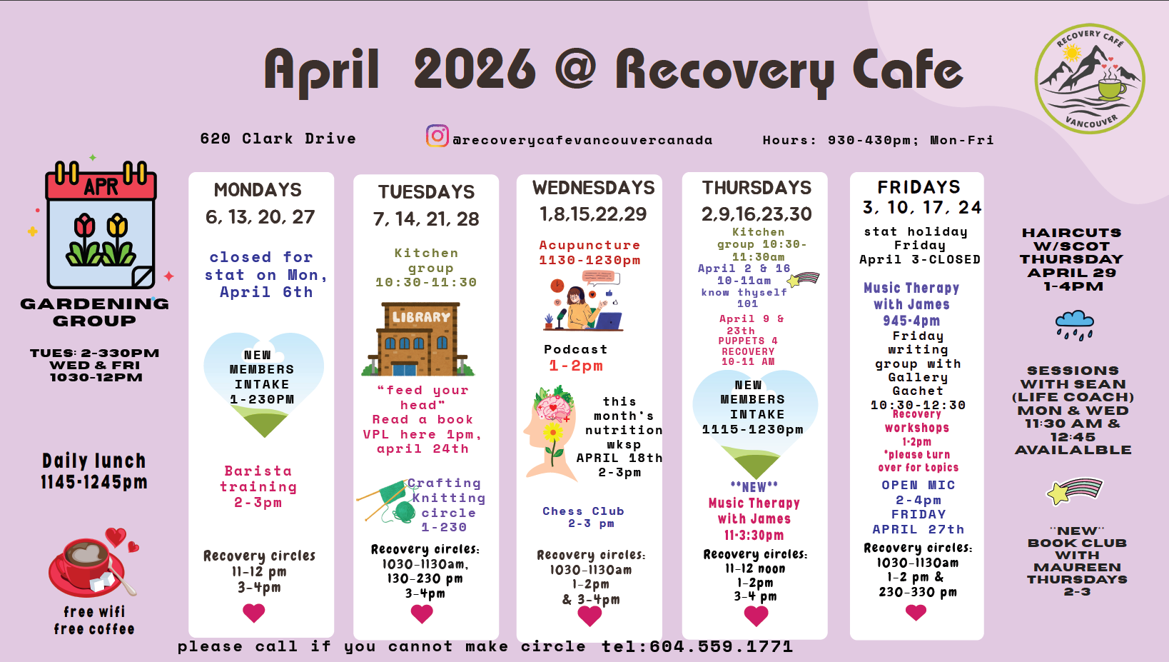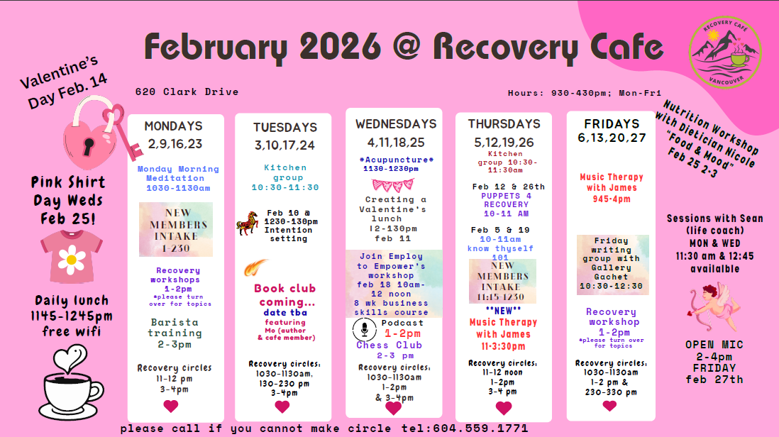 A special thank you to our partners, Streetohome Foundation and 625 Powell Street Foundation, for helping us bring the first Recovery Café to Canada and fostering a strong sense of community alongside vital resources and support.